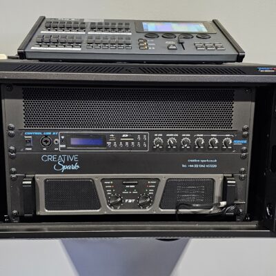 The new space was a shell and needed full technical infrastructure, control, and fixtures to enable them to use the space for performances. The brief was to create a flexible but easy to use space that the school could use to support the drama syllabus and also for performances. The Buildings roof was unable to support a new lighting rig so it was up to Creative Spark to design a solution that would take this into consideration, whilst still providing everything the school needed for the space.
