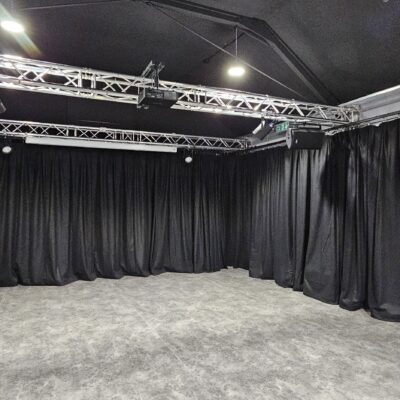 Lichfield Cathedral School now have an additional space to support their drama and performance needs. The space has been completely transformed and the full wrap around black drape allows the room to switch between a teaching classroom and drama studio. The teachers have a range of lighting fixtures for the students to learn with, along with a powerful sound system that can be used for classes and productions. As always, full training was provided on the installed systems, enabling staff and students to comfortable and confidently use their equipment.