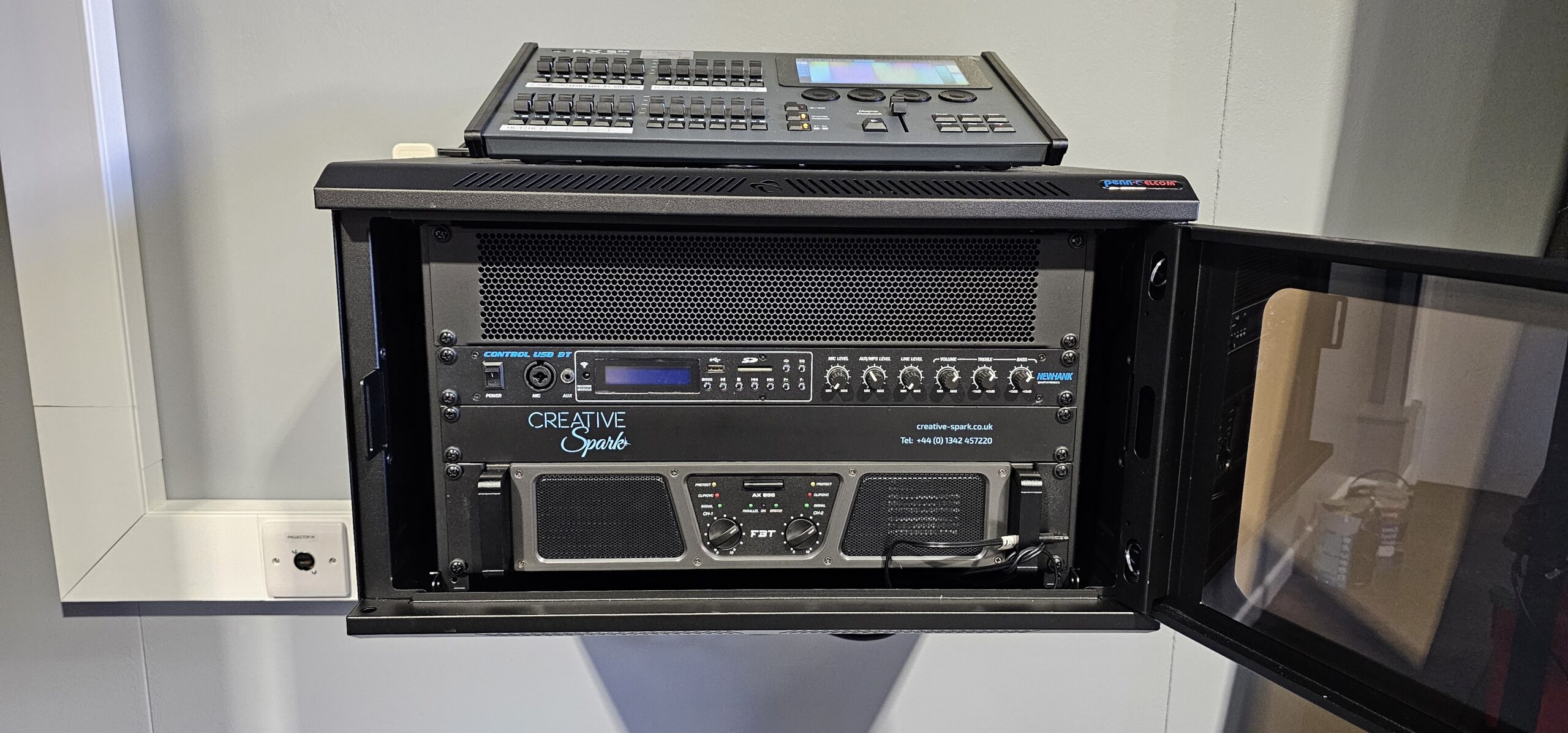 Lichfield Cathedral School now have an additional space to support their drama and performance needs. The space has been completely transformed and the full wrap around black drape allows the room to switch between a teaching classroom and drama studio. The teachers have a range of lighting fixtures for the students to learn with, along with a powerful sound system that can be used for classes and productions. As always, full training was provided on the installed systems, enabling staff and students to comfortable and confidently use their equipment.