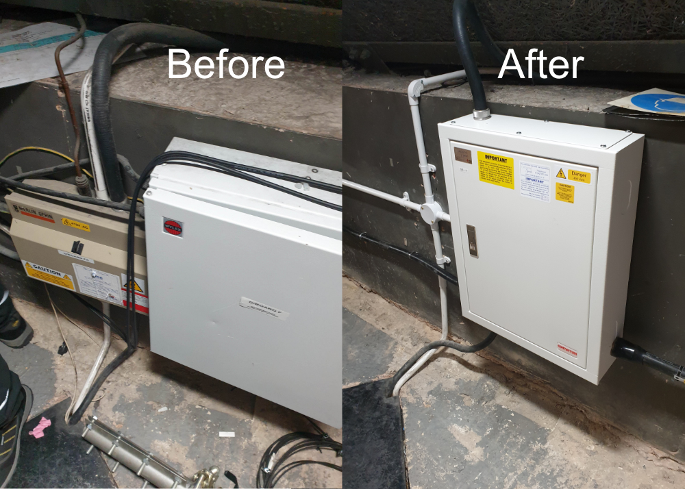 Installation of new distribution equipment with dedicated switching for each power outlet.
