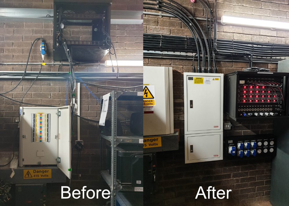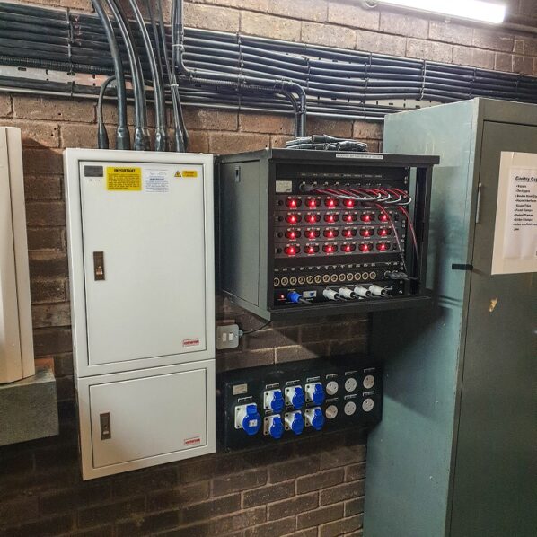 Installation of Advanced Infrastructure:Installation of custom-built outlets, compliant with BS7671 wiring regulations, for power and data points throughout the performance space.