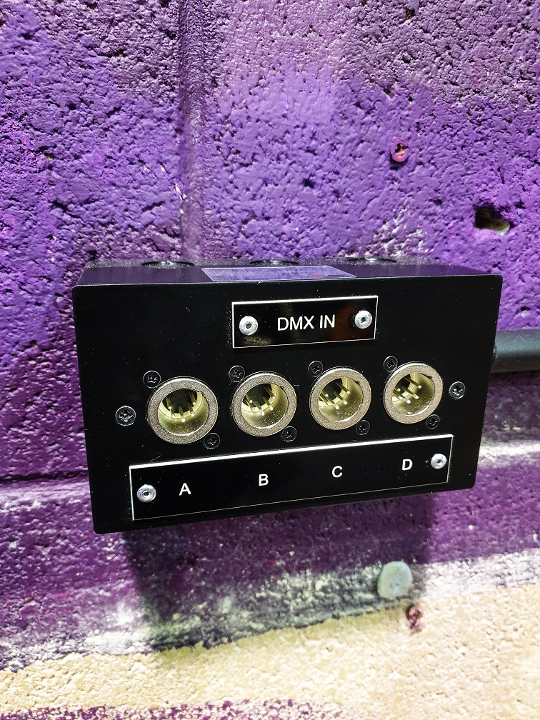 Installation of a new DMX patch rack with separate tie lines for each outlet.